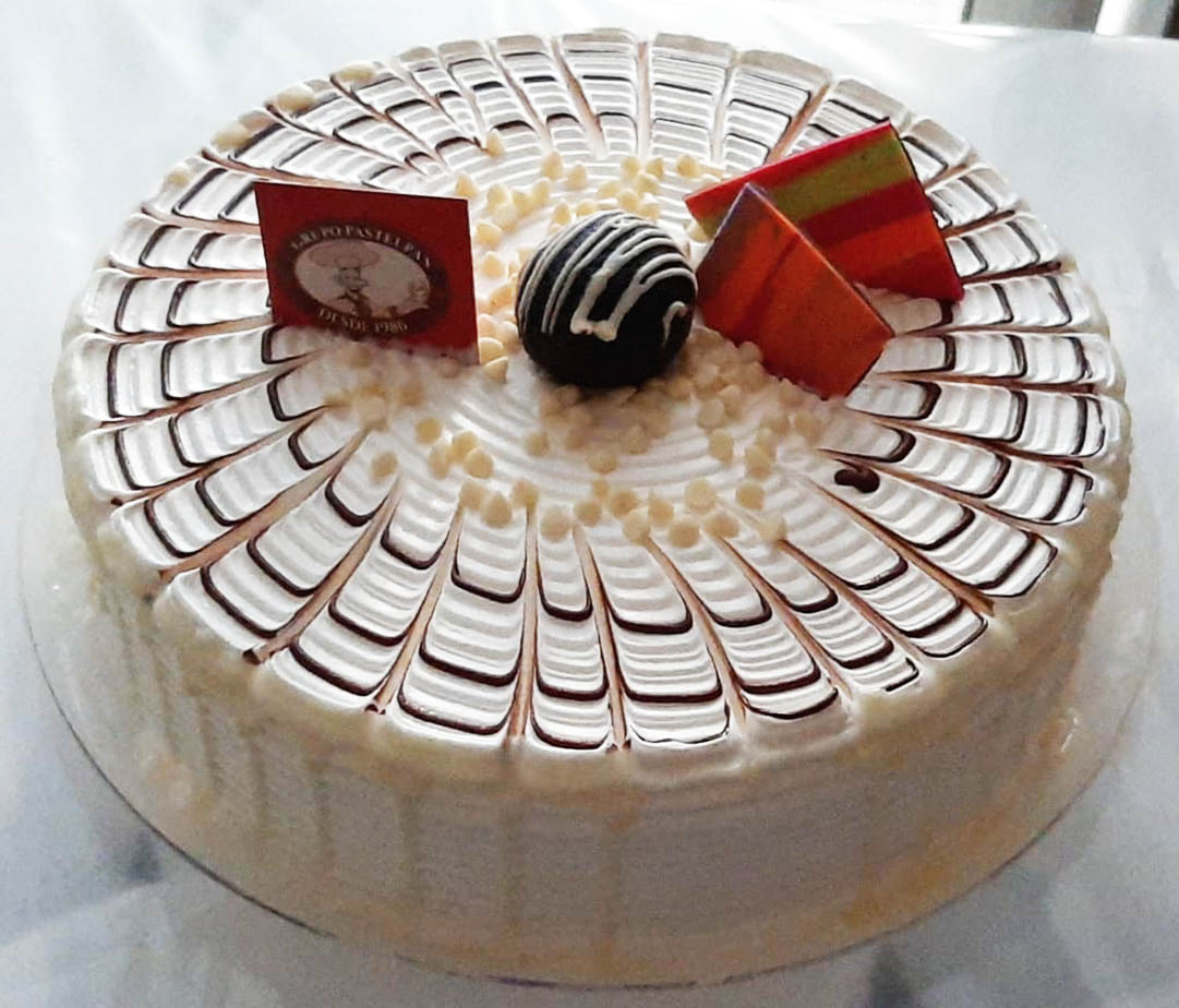 Esponjoso bizcochuelo de vainilla, remojado en una deliciosa mezcla de leches y cubierto con una rica crema vegetal con sabor lácteo. No lleva ningún tipo de relleno.