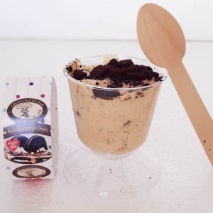 - CASSATA DE MORA: Postre en capas donde la base es un bizcochuelo de chocolate, sigue una capa de muss con chocolate blanco y por último una capa de muss de mora.